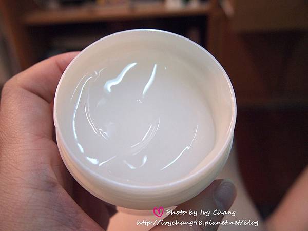 沒有添加香料、色素、礦物油、酒精的美白凝露味道聞起來有點像是糨糊