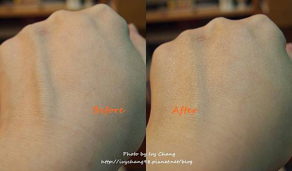 原本有些乾燥的手背在使用凝露之後有多了水亮感吧!
