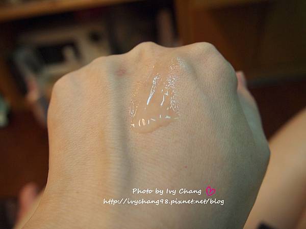 凝露狀的質地濃郁但不油膩,延展性也非常好,非常容易推開,使用後看起來有些油亮但是在完全吸收後就不會感覺到黏膩了